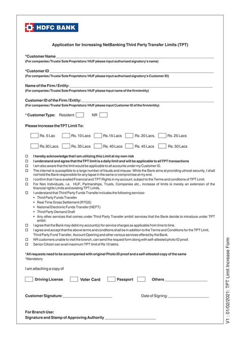 | Title | HDFC Bank Application Form for Increasing Net Banking Third Party Transfer Limits in PDF Download |