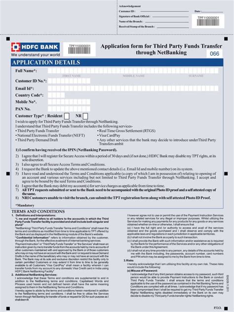 | Title | HDFC Bank Application Form for Third Party Funds Transfer through Net Banking in PDF Download |
