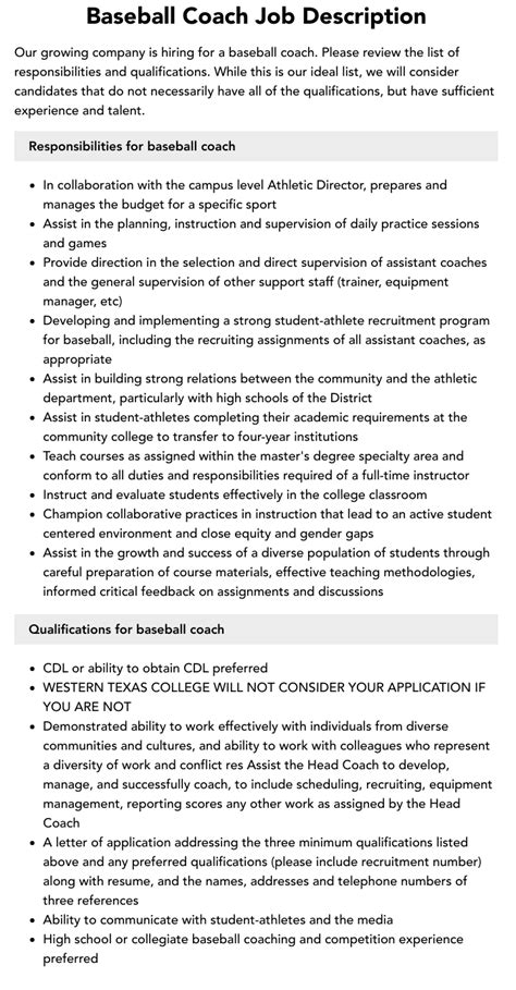 | Title | Baseball Coach Job Description - TapTalent |