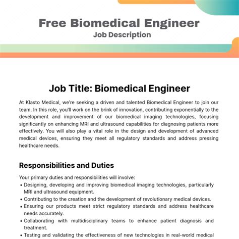 | Title | Free Biomedical Engineer Job Description Template to Edit Online |