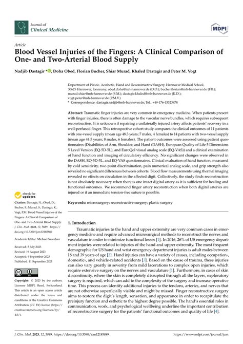 | Title | Blood Vessel Injuries of the Fingers: A Clinical Comparison of One- and Two-Arterial Blood Supply |