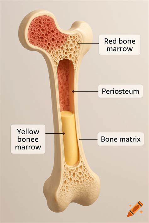 A 3D diagram of a human femoral bone cross-section, showing red and yellow bone marrow ... is a high-quality image in the Cleve collection, available at 1024 × 1536 pixels resolution — ideal for both digital and print use.