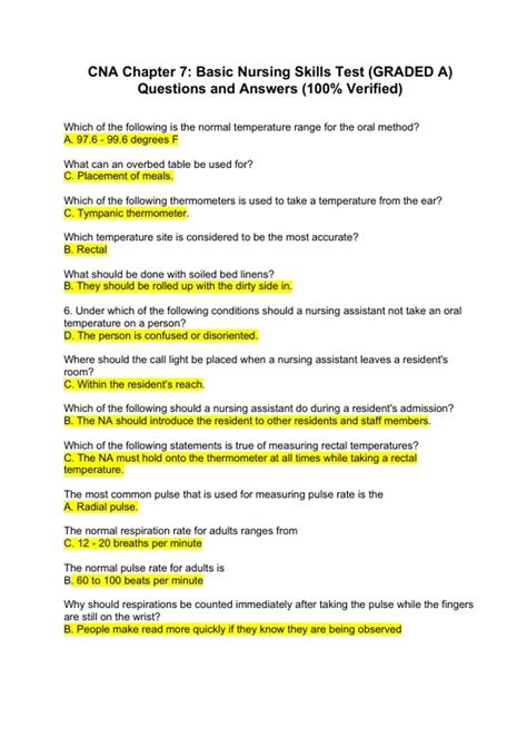 | Title | CNA Practice Test for Basic Nursing Skills (70 Questions and Answers) - CNA - Stuvia US |