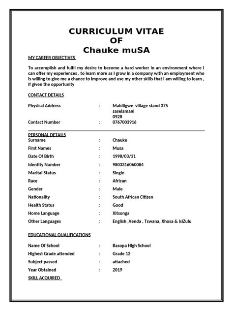 | Title | CV of Singita Chauke - 2025 Edition - Studocu |