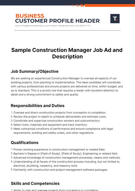 | Title | Free Sample Construction Manager Job Ad and Description Template to Edit Online |