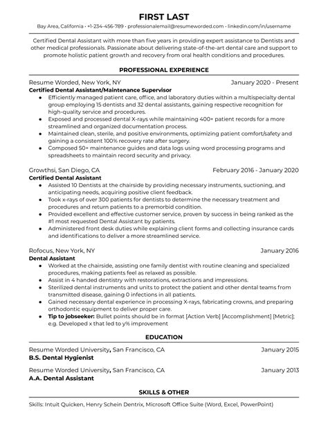 Craft the perfect Dental Assistant resume with our expert guide. Learn how to highlight your clinical skills, patient care experience, and dental software proficiency to land your dream job. Discover proven resume templates, effective bullet points, and professional formatting tips to impress hiring managers and stand out in the competitive dental healthcare industry. Boost your career prospects today.