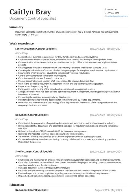 | Title | 10+ Document Control Specialist Resume Samples & Templates for 2025 |