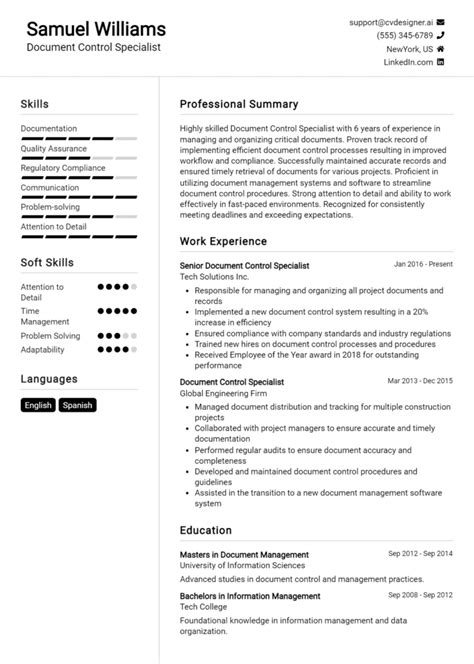 | Title | 19 Document Control Specialist Resume Examples And Templates for 2024 - ResumeDesign.ai |