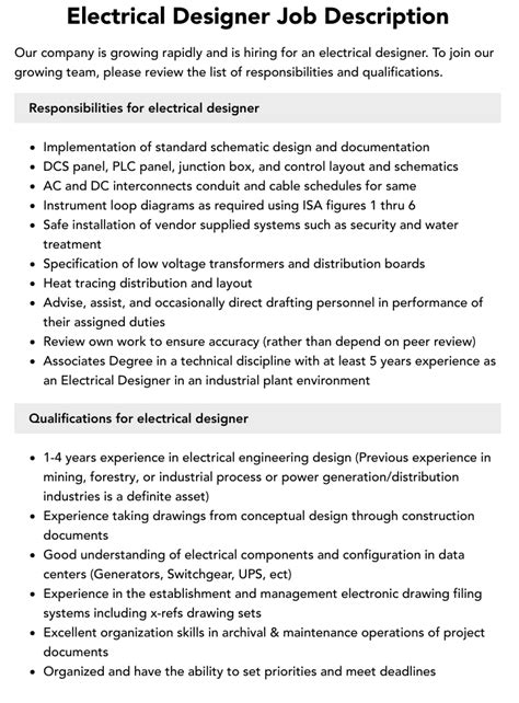 | Title | Electrical Designer Job Description |