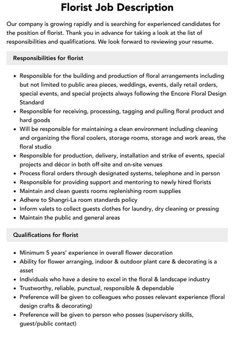 | Title | Florist Designer Job Description - TapTalent |
