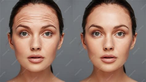 | Title | Premium Photo | Young caucasian woman with wrinkles on the forehead before and after face lift ... |