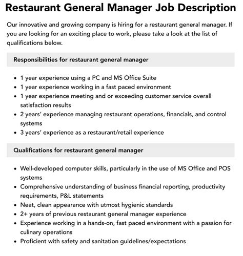 | Title | Restaurant General Manager Job Description: Duties and Responsibilities » Stratford Career ... |
