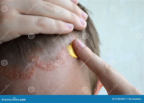 | Title | Anoint With Cream, Ointment, Medicine Forehead, Hair Line, Scalp With Psoriasis, Dermatitis ... |