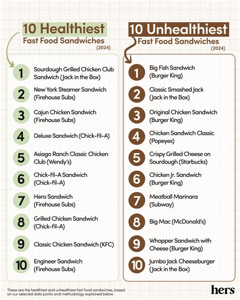 | Title | The 10 Healthiest (and Unhealthiest) Fast Food Sandwiches in 2024 | Take Care by Hers |