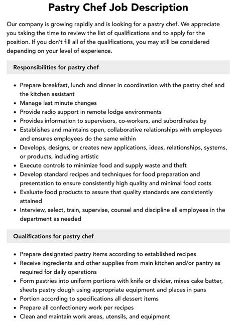 | Title | Pastry Chef Job Description: Responsibilities, Duties, and Salary Guide |