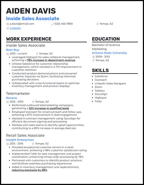 | Title | 5 Inside Sales Resume Examples for 2023 | Resume Worded |