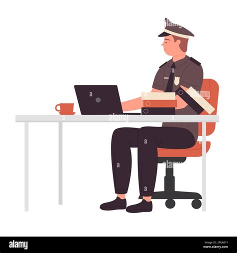 | Title | Policeman at desk work. Police department, police officer working vector illustration Stock ... |