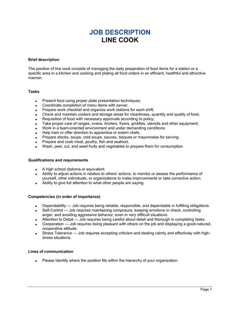 | Title | Line Cook Job Description Sample | Templates at allbusinesstemplates.com |