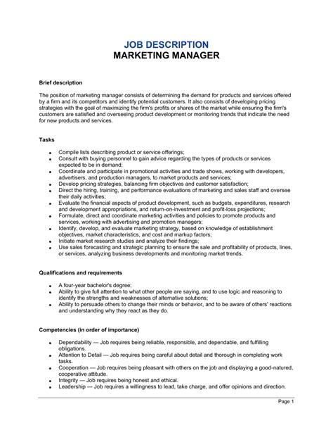 | Title | Marketing Manager Job Description Template |