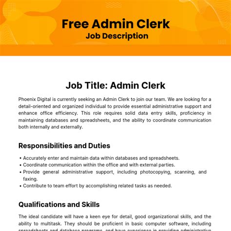 | Title | Free Admin Clerk Job Description Template to Edit Online |