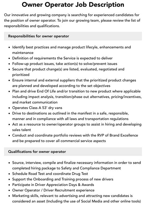 | Title | Owner Operator Job Description |