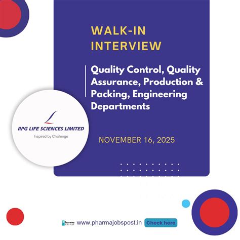 | Title | RPG Life Sciences Walk-In Interview 2026 for QC, QA, Production, Engineering & More | Ankleshwar ... |
