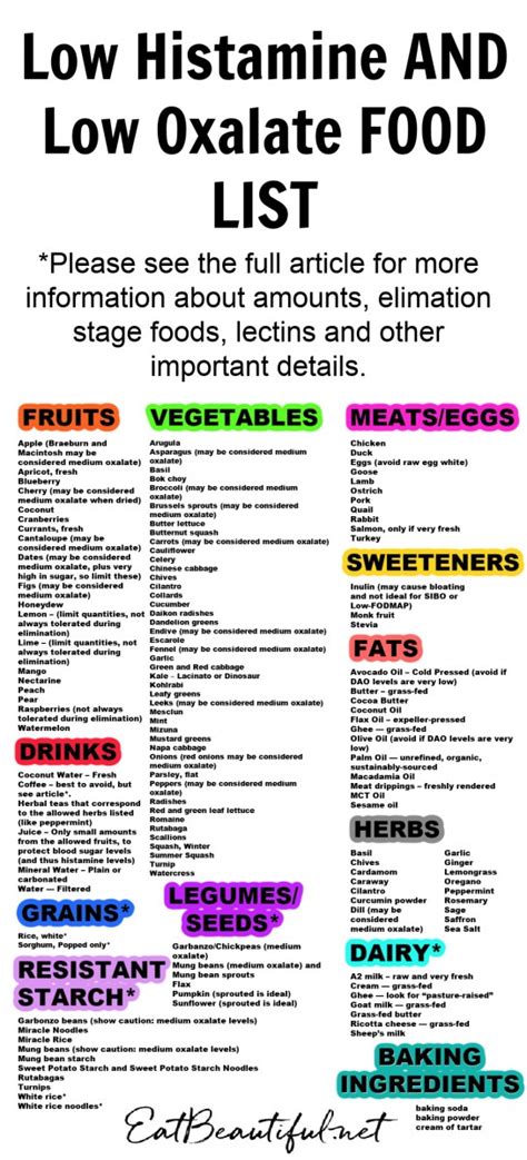 | Title | Low Histamine AND Low Oxalate FOOD LIST with Printable - Eat Beautiful |