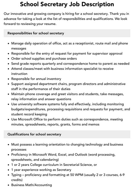 | Title | School Secretary Job Description |
