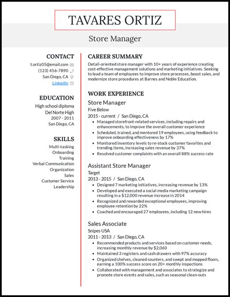 | Title | Store Manager Resume: Job Description & Writing Tips |