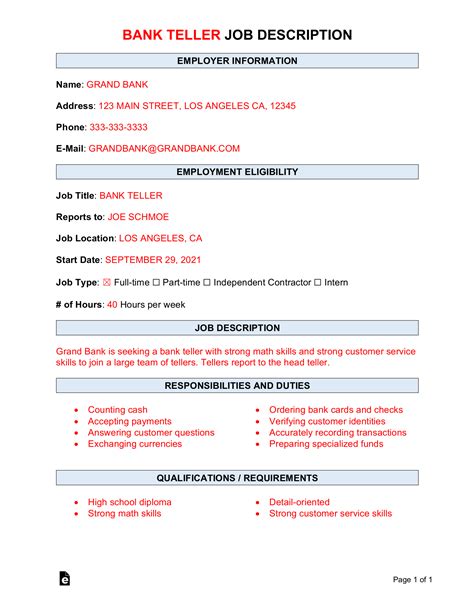 | Title | Free Bank Teller Job Description Template | Sample - PDF | Word – eForms |
