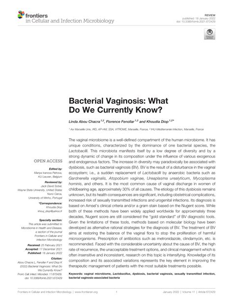 | Title | Frontiers | Bacterial Vaginosis: What Do We Currently Know? |