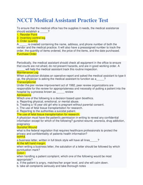 | Title | NCCT Medical Assistant Practice Test: Questions & Answers - NCCT ... - One For All |