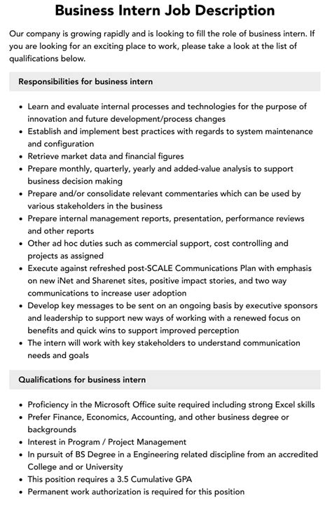 | Title | Business Intern Job Description |